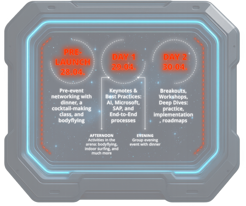 Ready for the countdown? Let’s head toward the future together at our ORBIS Customers Connect event—featuring an end-to-end setup of SAP and Microsoft technologies, as well as Celonis, Databricks, and other tools that enable true digital transformation.